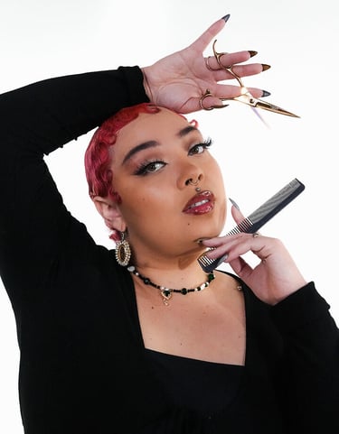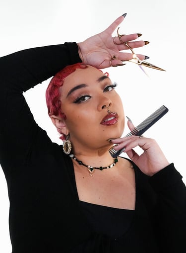 With six years in the industry I'm confident working with all hair types. I specialize in curly hair, from wavy, curly, coils, and Afro hair I specialize in all things texture. As a black and indigenous queer person of color who knows how important hair is to culture and identity, I always strive to serve my community and provide excellent results and a safe space. Some of my favorite services to do are curly cuts, fades, mullets, blondes and buzzcut hair colors!! I love fostering community and connection I want all my clients to feel safe in a chill fun environment and leave my chair feeling more confident than they walked in!